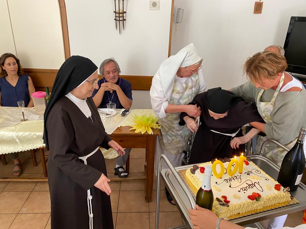 Madre Maria, alcune sorelle delle fraternità vicine, numerosi parenti e persino il Sindaco, si sono ritrovati per lodare l'Amabilissimo Dio insieme a sr. M. Carola per i suoi 100 anni. Alla nostra carissima sorella che ha raggiunto questo bel traguardo auguriamo ogni bene nel Signore, ringraziandola dell'offerta serena, orante e gioiosa che continuamente fa di sè al buon Dio e all'Istituto!