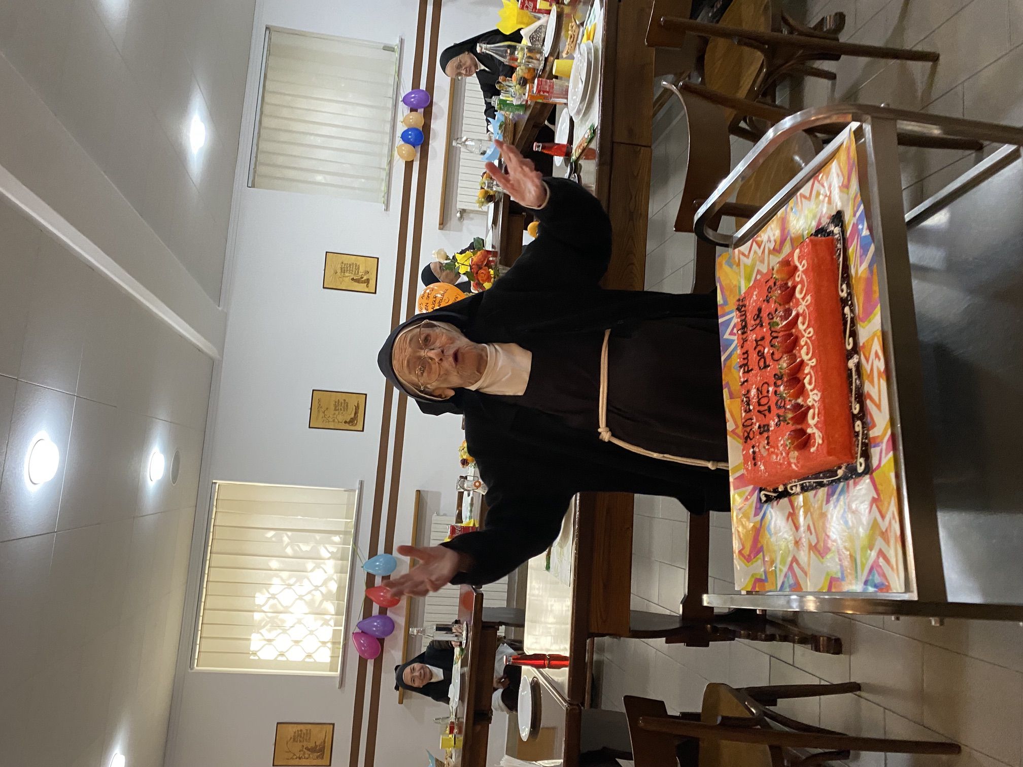 In particolare desideriamo pregare in questa santa messa per la nostra carissima sr. M. Apollonia che ha raggiunto il bel traguardo dei 103 anni, perché continui a rendere lode al Signore con la sua vita e ad offrire la sua quotidianità, abitata costantemente dalla presenza del Signore.