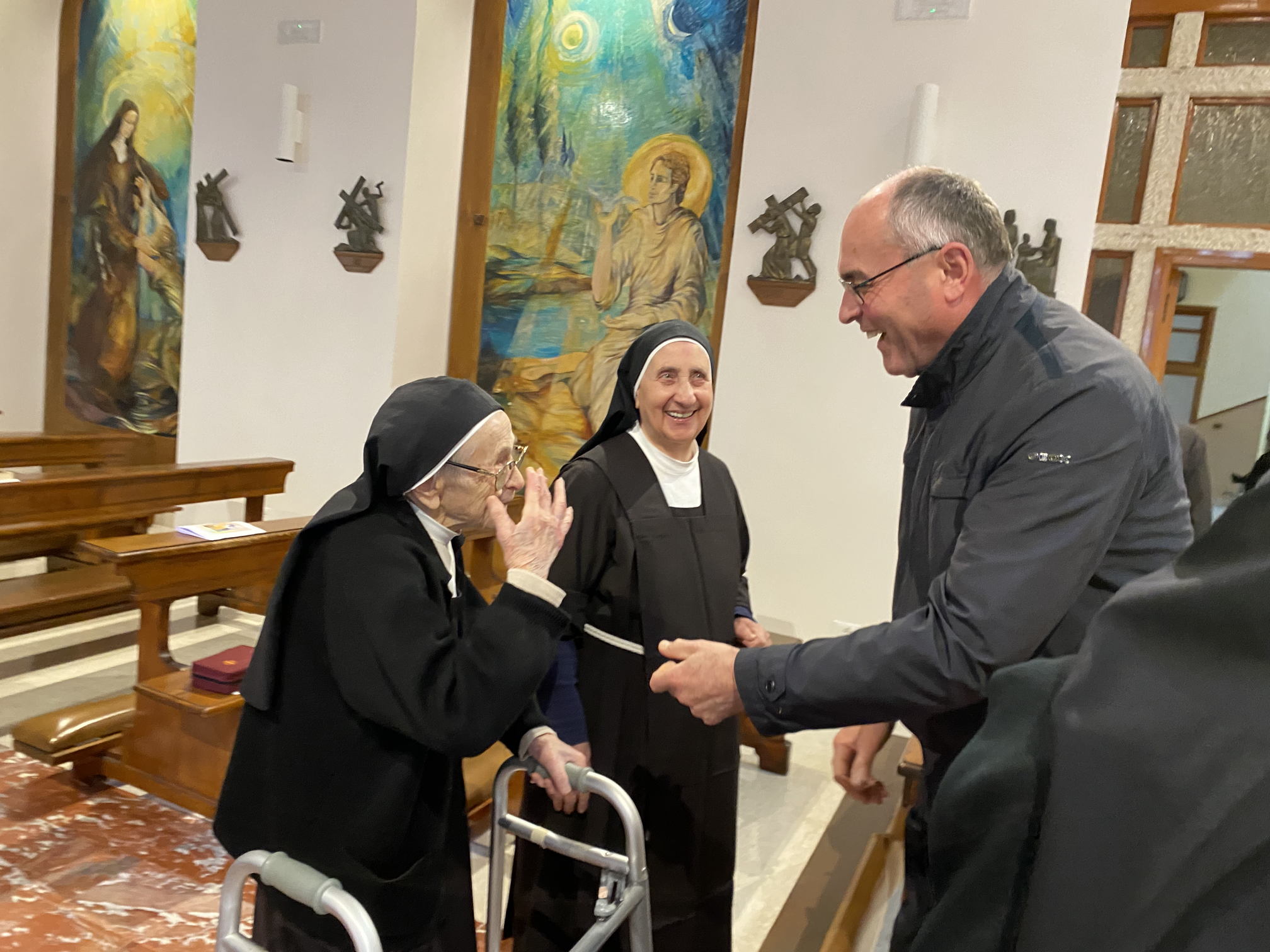 Queridas Ir. Juliana e Ir. M. Florence, com as palavras de Papa Francisco as exortamos: “ a recordar, como numa peregrinação interior, o "primeiro amor" com o qual o Senhor Jesus Cristo aqueceu seus corações, não por nostalgia, mas para alimentar essa chama... para estar com Ele e colocar-se, como Ele, a serviço de Deus e de vossos irmãos e irmãs". Desejamos a vocês que o encanto da vida consagrada e a alegria de pertencer a Cristo animem sempre seu "sim" em um círculo contínuo e profundo de comunhão agápica.