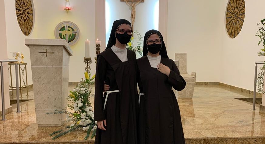 Que Deus continua dar. Dia 13 de janeiro as nossas irmãs, Irmã Maria Tamires e Irmã Maria Elisângela renovaram a Deus com entusiasmo, na presença de toda a Igreja, os votos de Castidade, Pobreza e Obediência segundo a nossa Regra e Constituições, para viver a plenitude do amor, numa vida totalmente consagrada a Deus na comunhão fraterna para o bem de muitos.