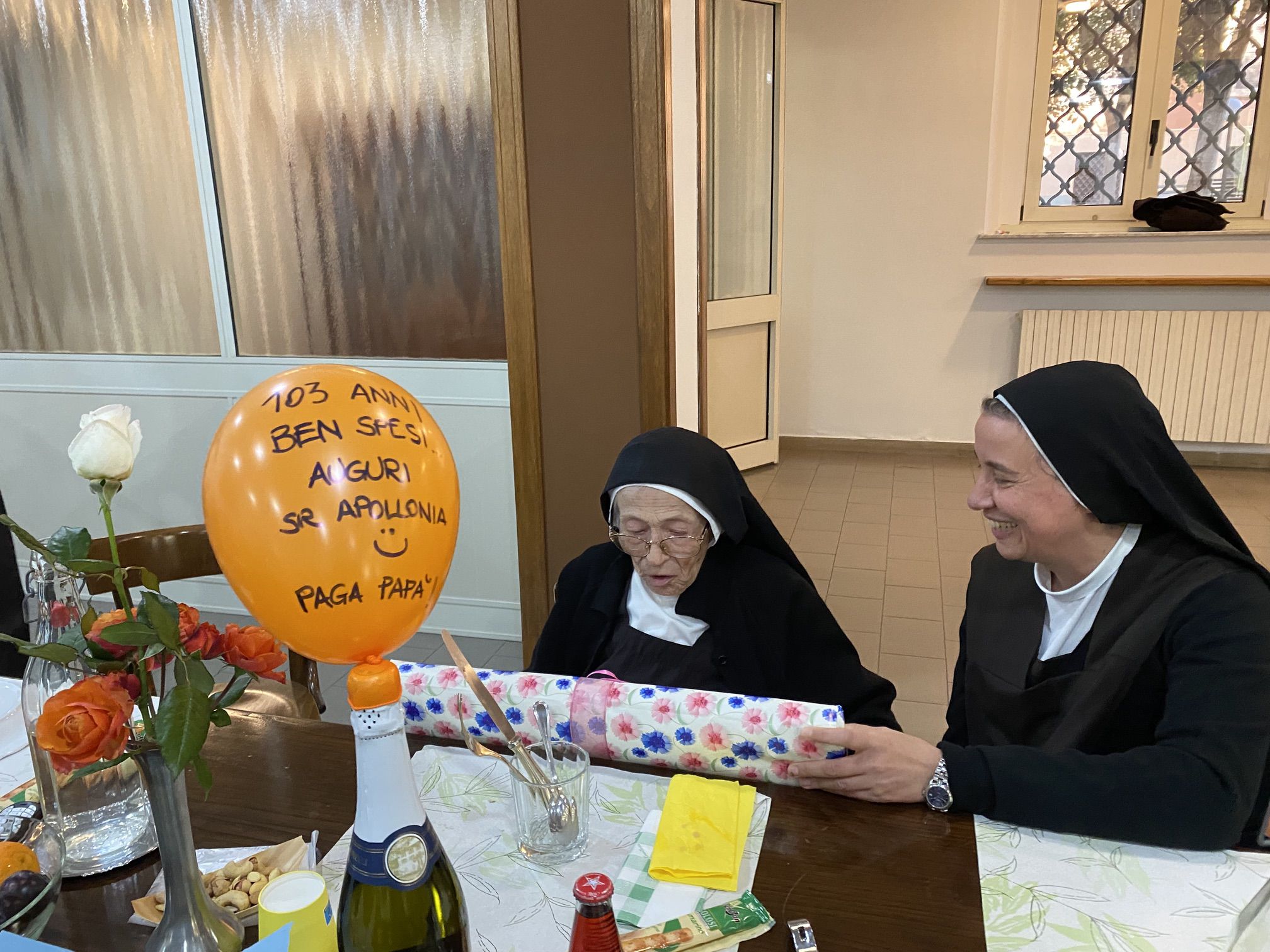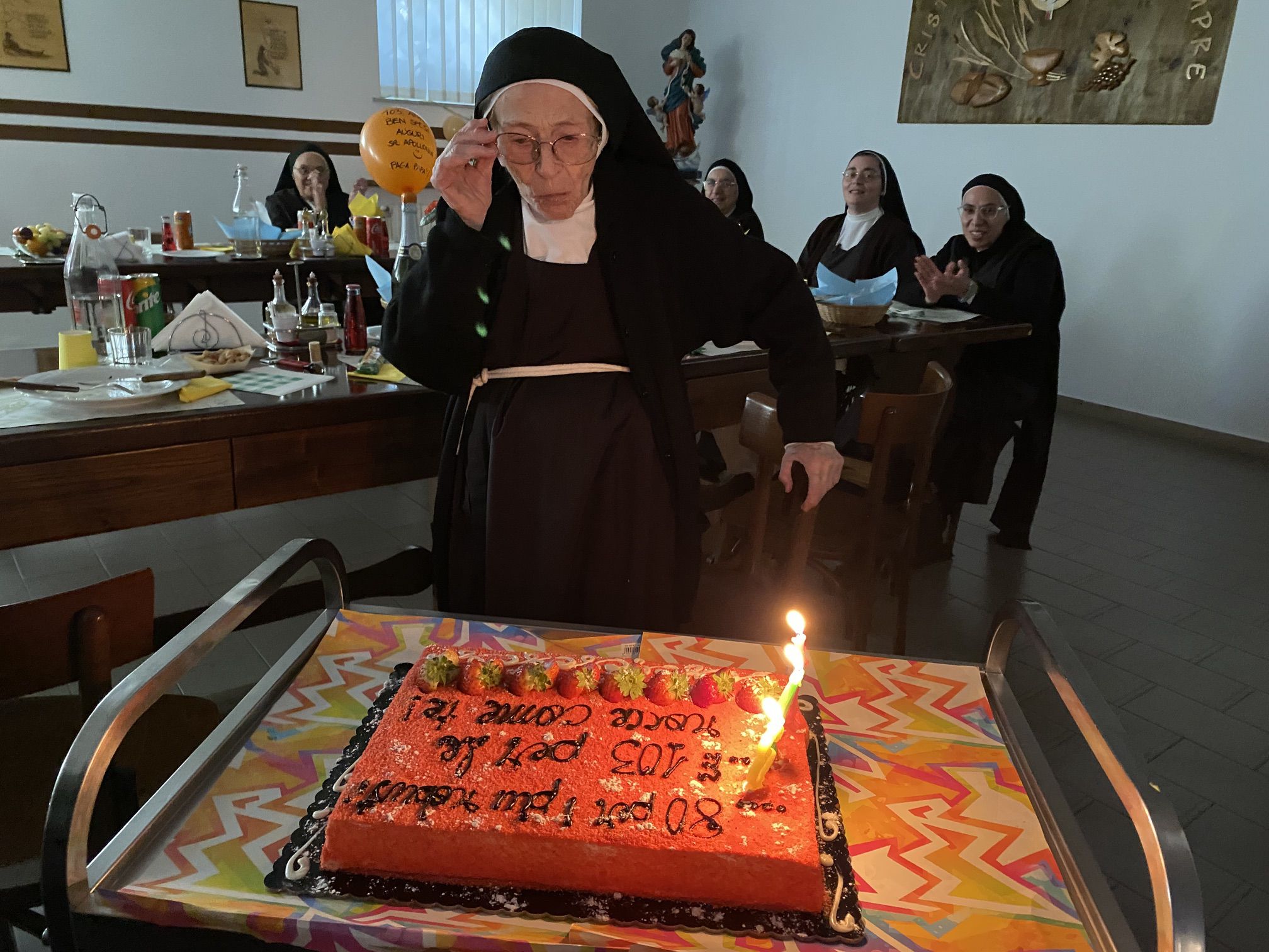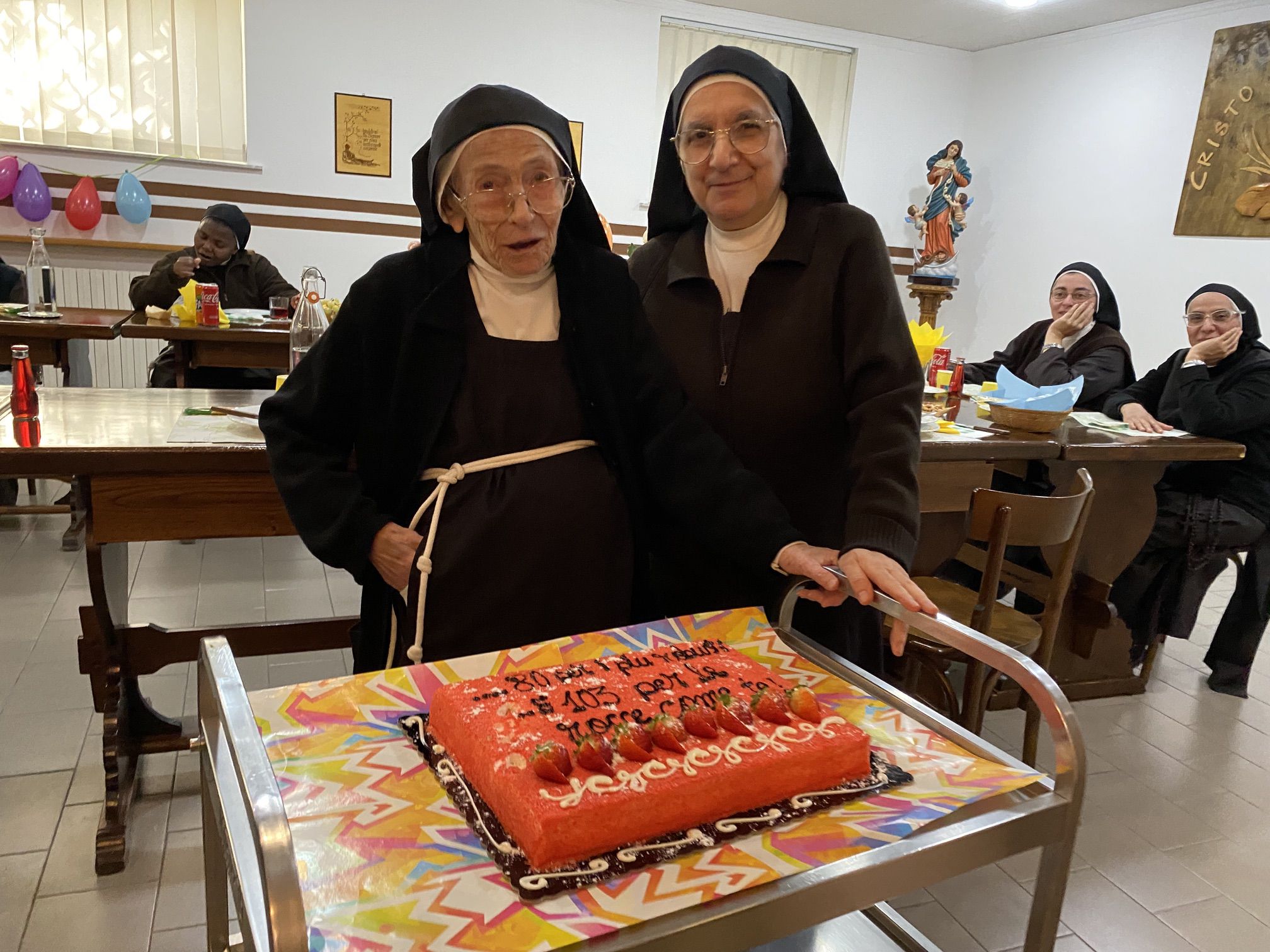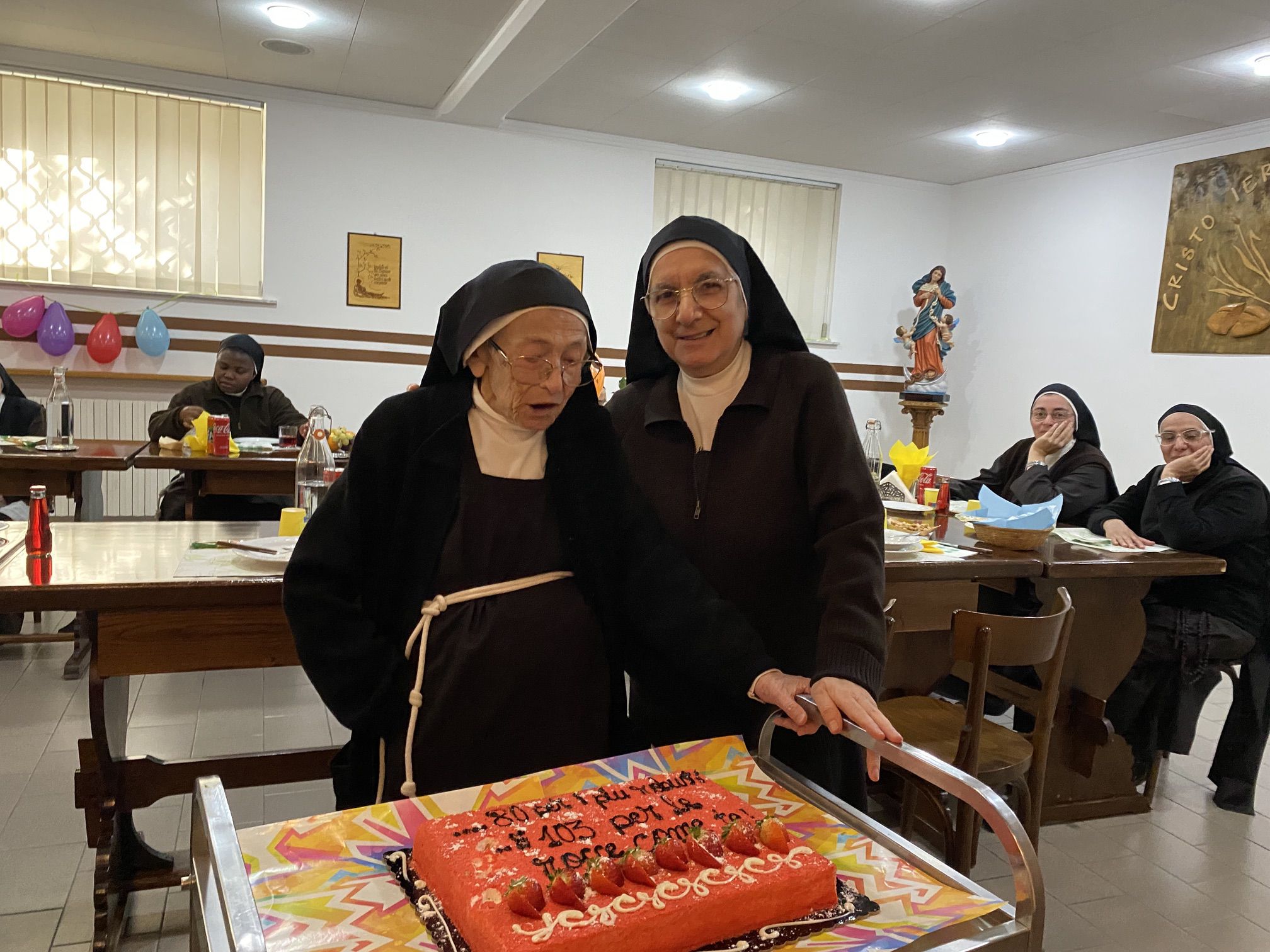 In particolare desideriamo pregare in questa santa messa per la nostra carissima sr. M. Apollonia che ha raggiunto il bel traguardo dei 103 anni, perché continui a rendere lode al Signore con la sua vita e ad offrire la sua quotidianità, abitata costantemente dalla presenza del Signore.