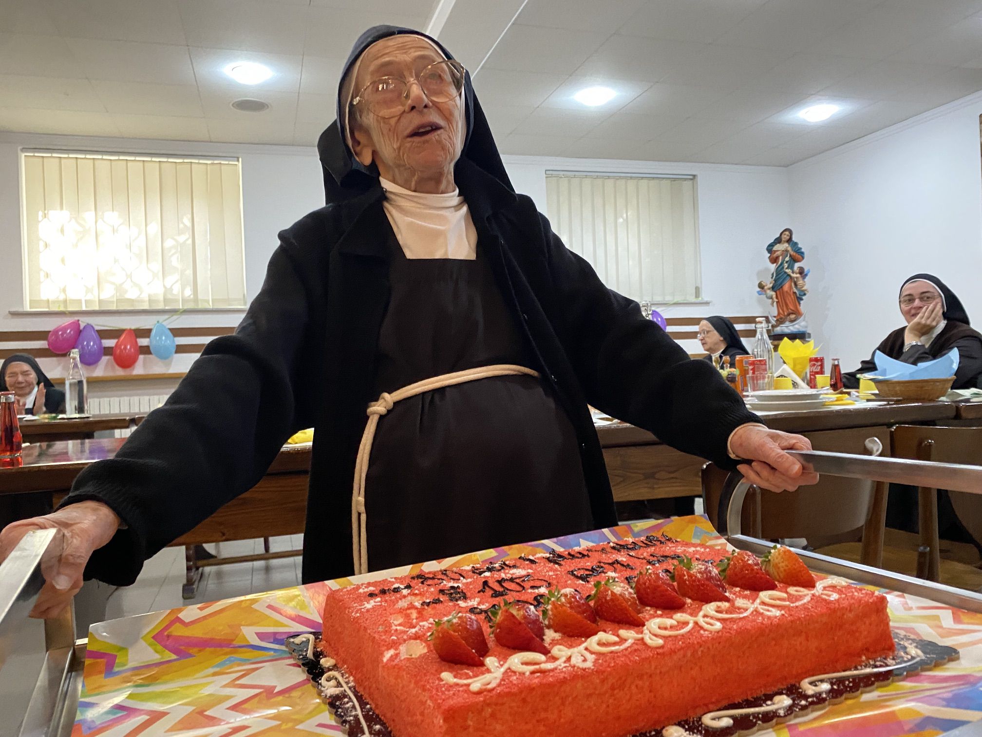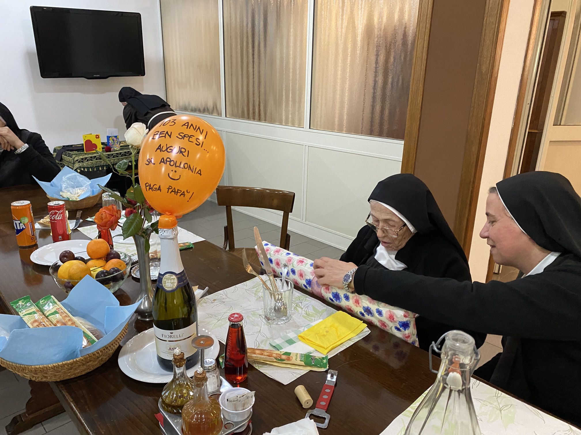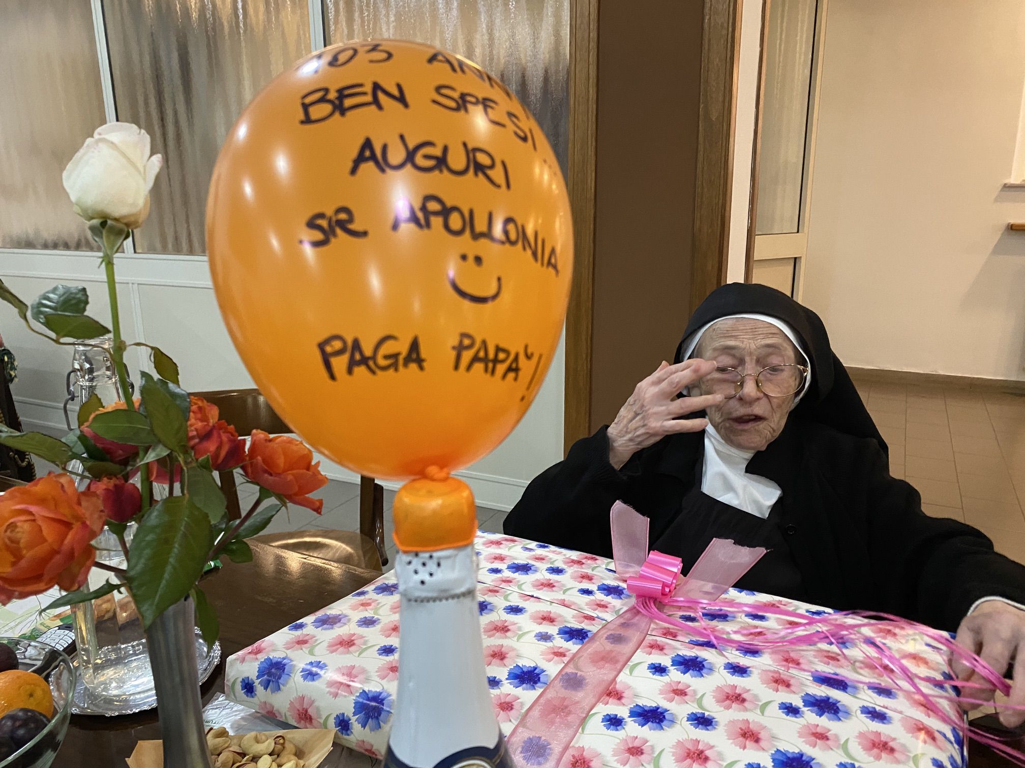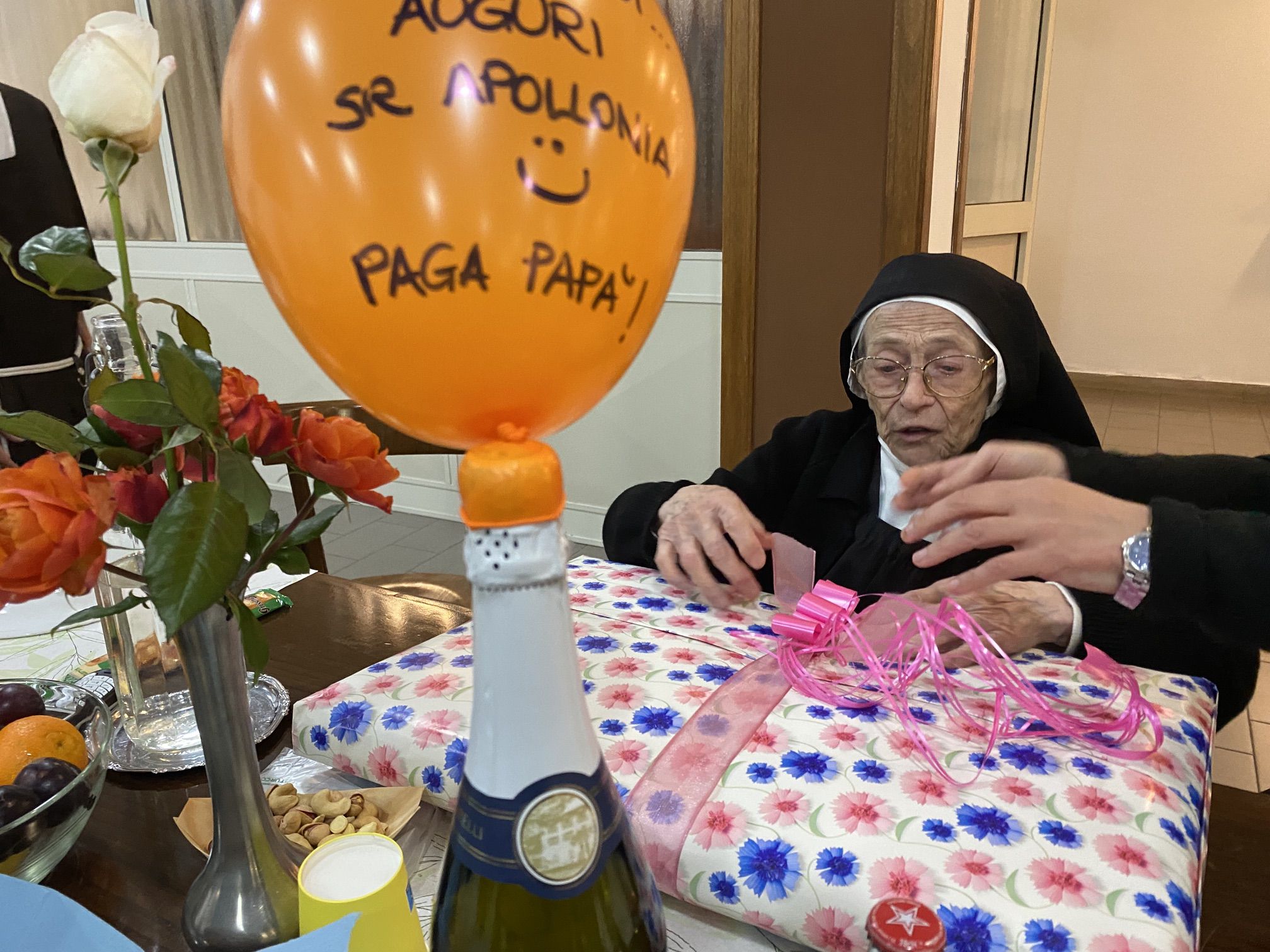 In particolare desideriamo pregare in questa santa messa per la nostra carissima sr. M. Apollonia che ha raggiunto il bel traguardo dei 103 anni, perché continui a rendere lode al Signore con la sua vita e ad offrire la sua quotidianità, abitata costantemente dalla presenza del Signore.